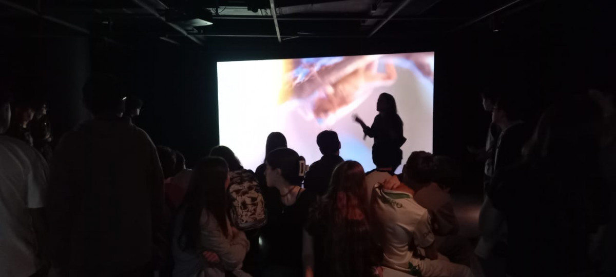 Los alumnos tuvieron la oportunidad de apreciar la videoinstalación de Sebastián Díaz Morales El cielo cayendo y las obras de Mondongo, Argentina (paisajes) y Baptisterio de los Colores.