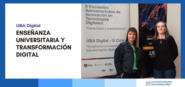 El día 25 de septiembre el Colegio Nacional de Buenos Aires estuvo representado en el II Encuentro Iberoamericano de Innovación en Tecnologías Digitales: Universidad y sostenibilidad, en el marco del ciclo UBA Digital - Enseñanza universitaria y transformación digital.