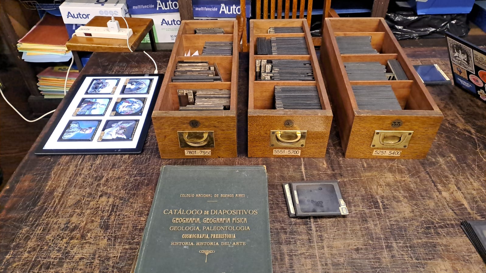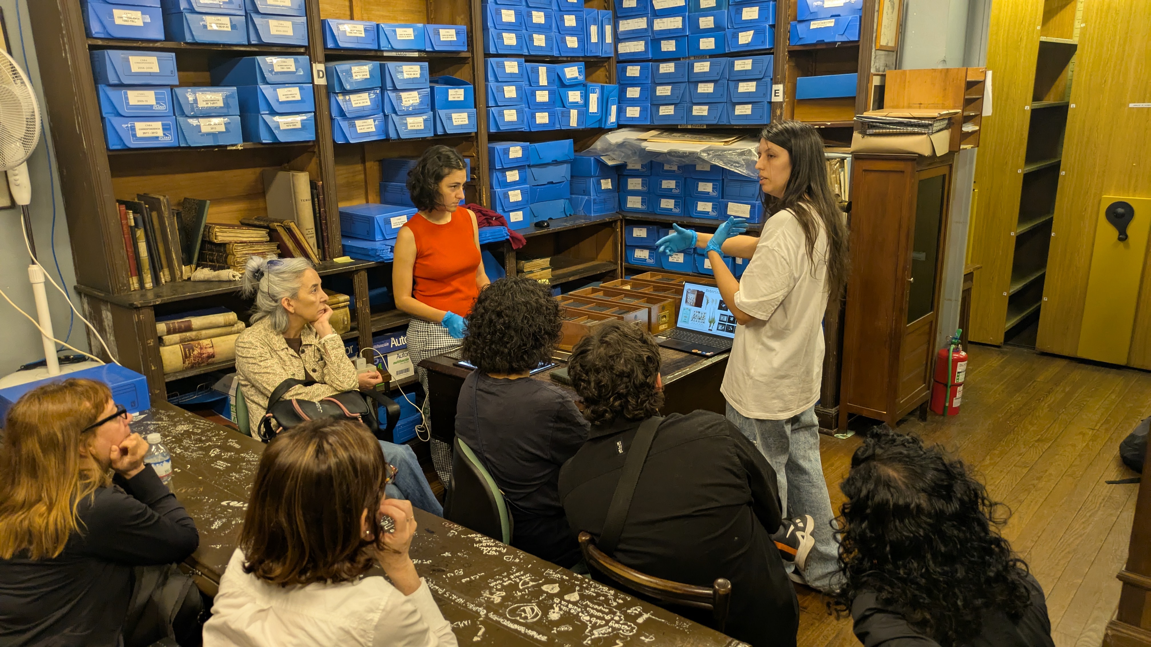 La visita continuó en el Archivo, donde las investigadoras Greta Winckler y Paula Bruno Garcén (egresadas de la promoción 2009) presentaron parte de su trabajo sobre las proyecciones luminosas en el CNBA, recientemente publicado en el libro Enseñar con imágenes: las proyecciones luminosas en el Colegio Nacional Buenos Aires. Esta investigación indaga en el uso histórico de tecnologías visuales para la enseñanza y ejemplifica los esfuerzos de documentación del patrimonio educativo que se vienen desarrollando en nuestra institución.